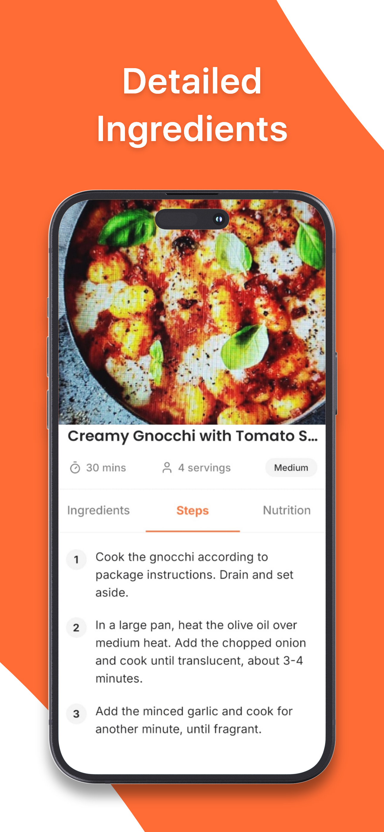 Point your camera at any meal and let AI do the magic — full recipes with ingredients, steps, and nutrition in seconds.